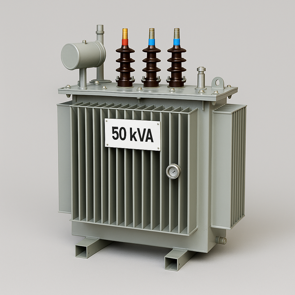 50kVA Oil-Immersed Transformer, Dyn11 vector group, suitable for 11/22/33kV to 420V distribution. SANS/IEC 60076 compliant, oil-immersed, naturally cooled (ONAN).