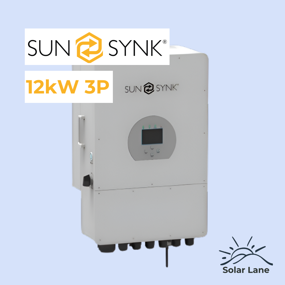 Brand: SUNSYNK; Model: SUNSYNK-12K-SG04LP3; Power: 12kW; Volts: 800V; Dimensions: 422mm x 702mm x 281mm; Weight: 47.5kg; Warranty: 5 Years / 10 Years; Delivery: Nationwide; ETA: 0-7 Days; Collection: CPT/JNB/DUR/PTY.
